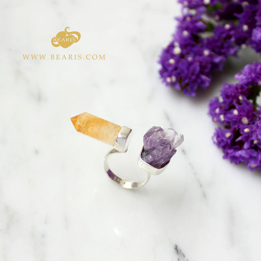 Sortija de Plata 950 con Drusa Amatista + punta facetada de Citrino Material: Plata 950. Piedra Preciosa o semipreciosa: Drusa Amatista + Citr...
